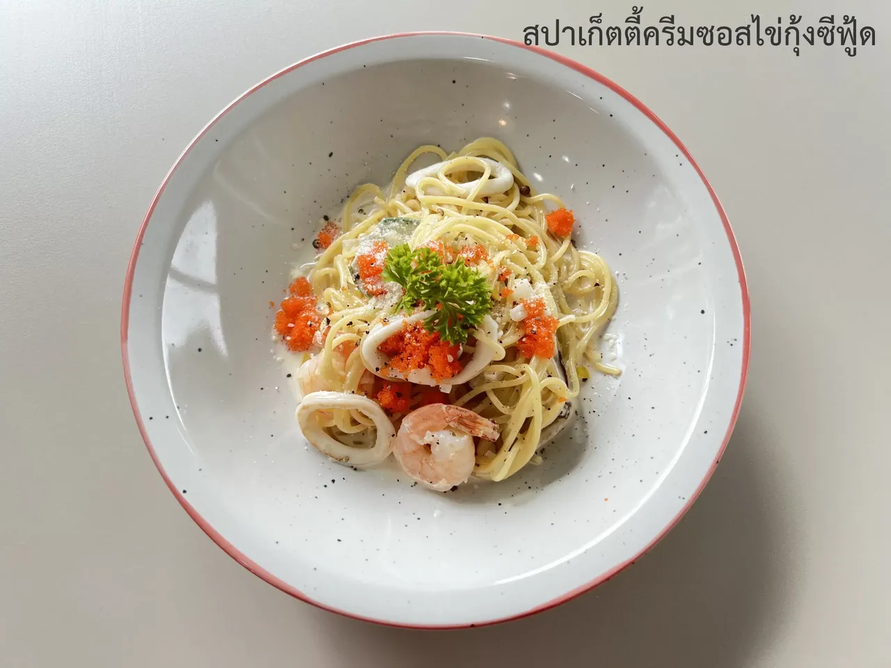 สปาเก็ตตี้ครีมชอสไข่กุ้งซีฟู้ด