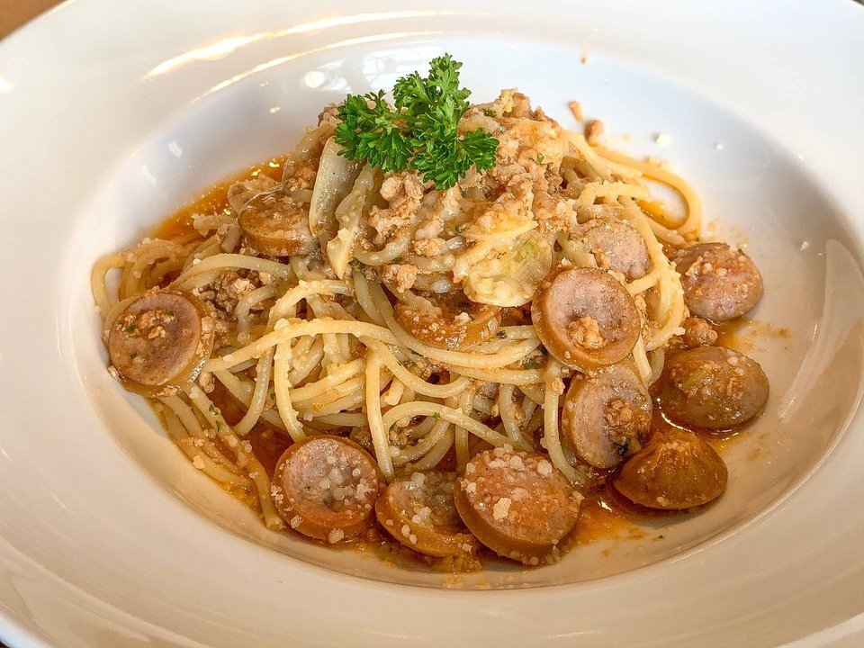 สปาเก็ตตี้ไส้กรอกอิตาเลี่ยน ชอสเผ็ด