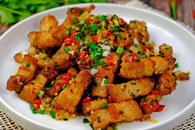 CRISPY VEGAN PORKLESS STIR- FRIED WITH CHILI AND SALT (VEGETARIAN)