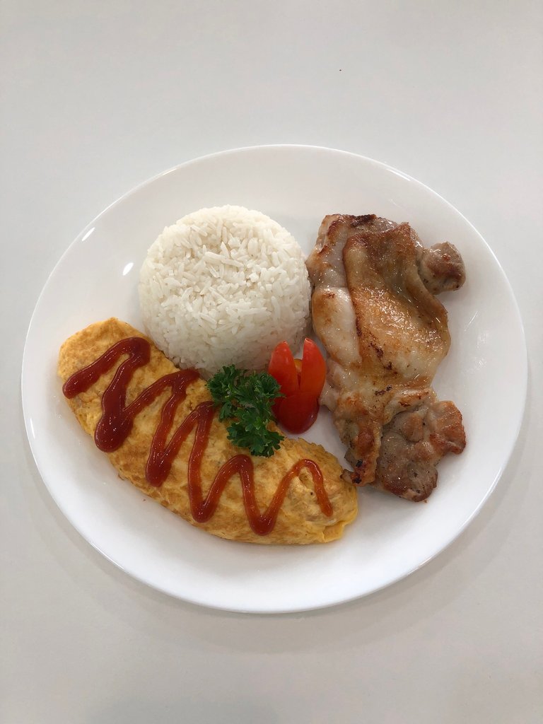 GRILLED CHICKEN ON TOP JASMIN RICE AND OMELETTE