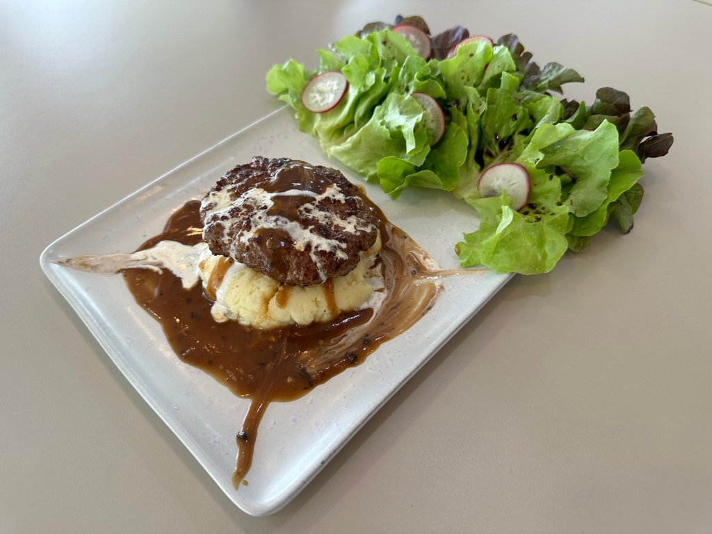 สเต็กเบอร์เกอร์เนื้อกับมันบด